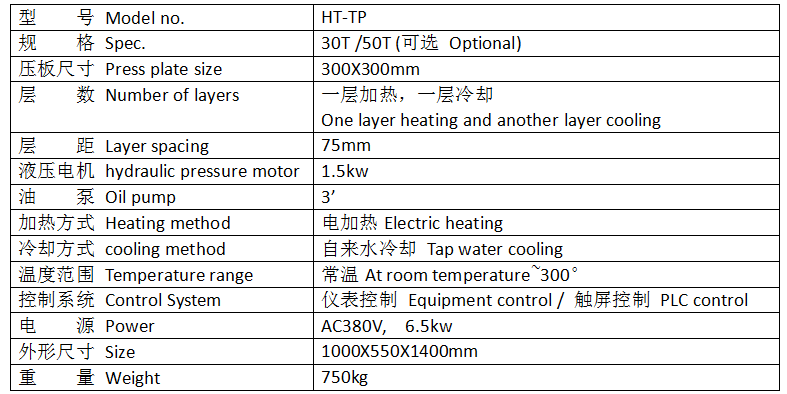 適用橡塑料原料、顏料、油默、化工原料等。將各原料放于模內,夾于本機電熱平板間,加以合適壓力及溫度,使原料成型,以供試驗。